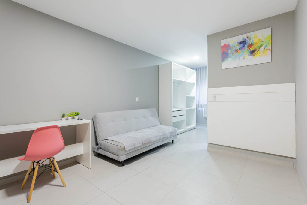 Studio de 35m² mobiliado com design sofisticado e funcional