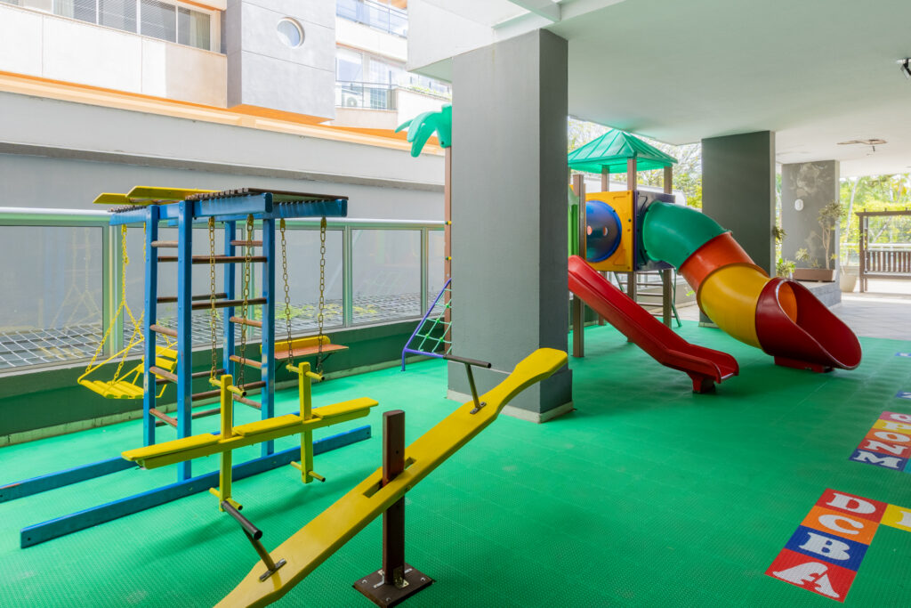 O condomínio dispõe de infraestrutura completa, com piscina, academia, espaço gourmet, salão de festas, churrasqueira, playground, elevador e segurança.