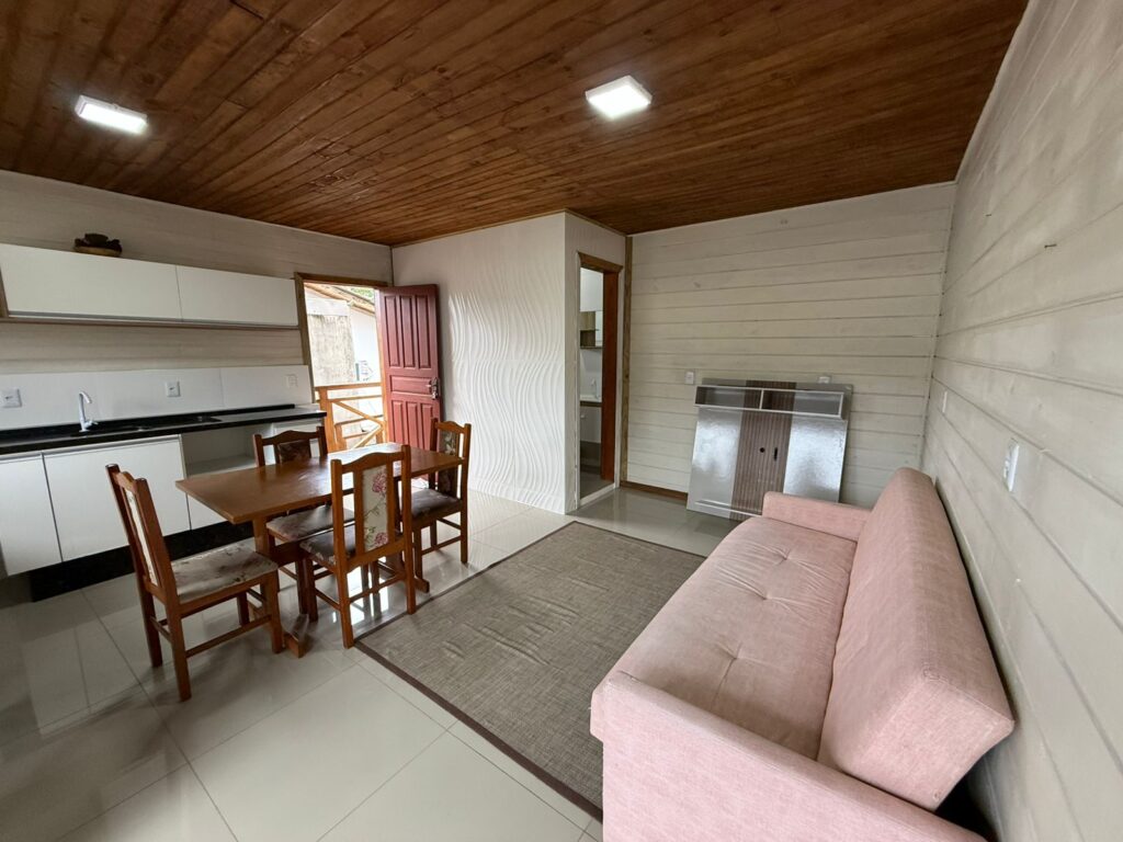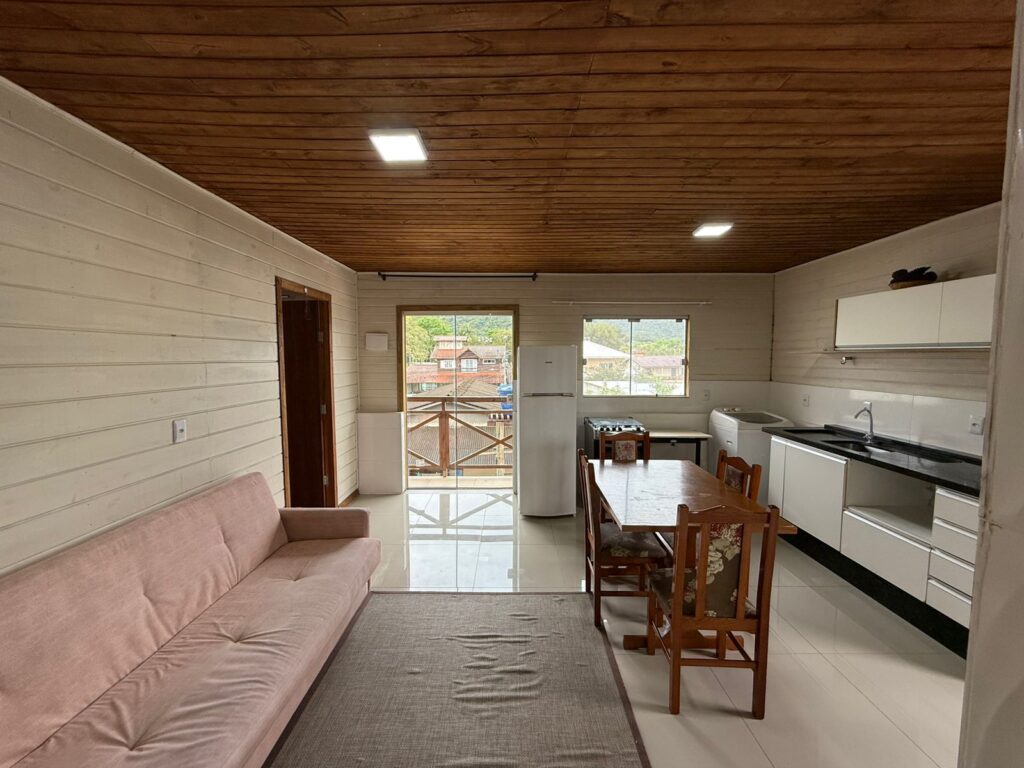 O imóvel possui 45 m² muito bem distribuídos, com 1 dormitório, 1 banheiro, um cômodo como um pequeno "closet" e um quintal, ideal para momentos ao ar livre e de descontração. Já está mobiliado, com cozinha com armários embutidos, geladeira, fogão, mesa 4 cadeiras, sala, com sofá-cama, rack, quarto com cama, closet com arara e prateleira, banheiro com armário e box, pronto para morar, oferecendo praticidade e conforto desde o primeiro dia.