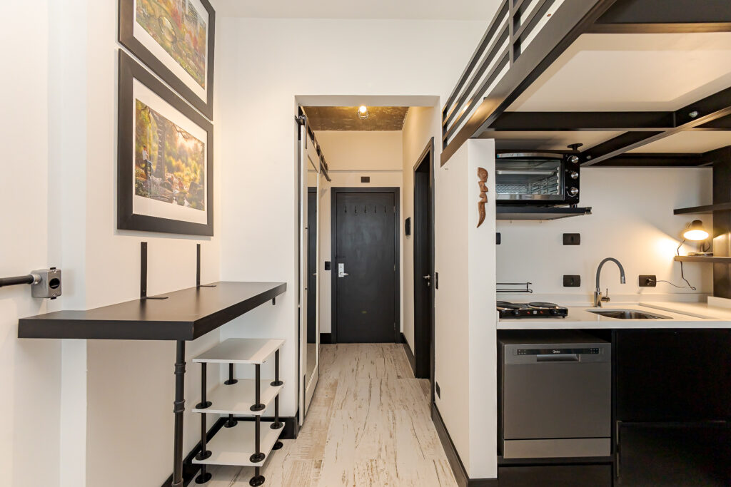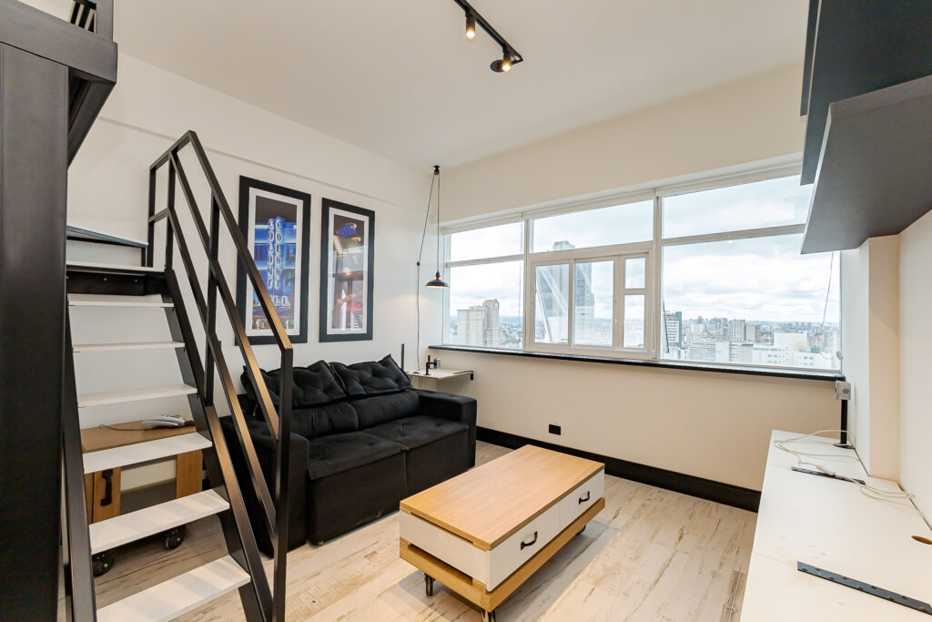 Loft de 29 m² no Evolution Smart Residence, localizado na Rua Brigadeiro Franco, a menos de 1 km da Avenida do Batel e próximo a comércios e serviços essenciais. Um espaço compacto, bem distribuído e funcional, ideal para quem busca praticidade, conforto e uma rotina urbana sem complicação.