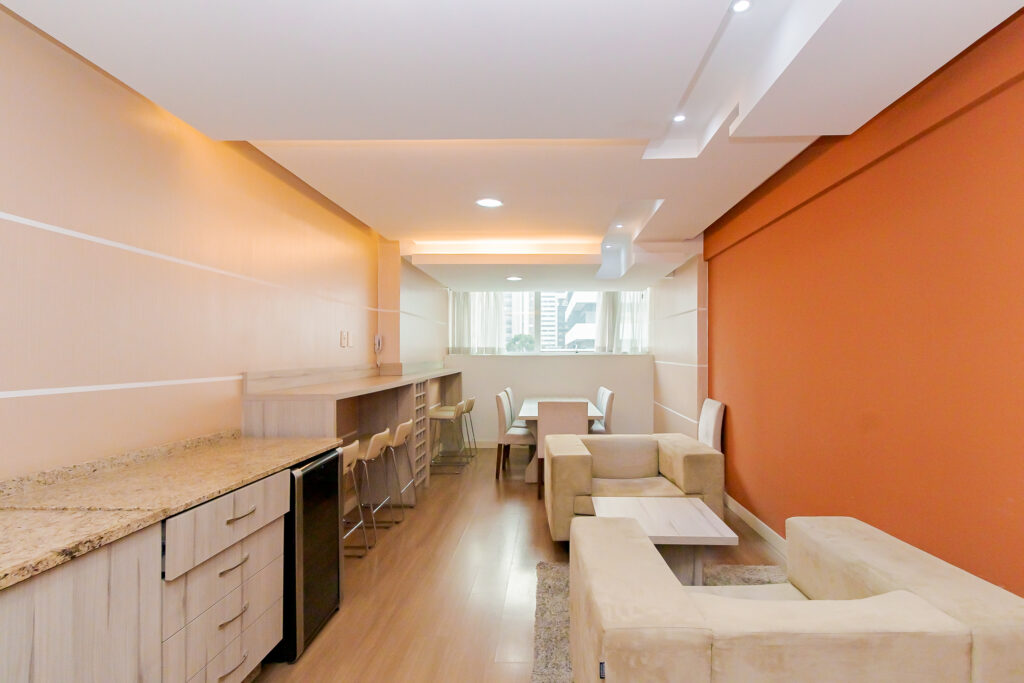 Este loft de 26m² é totalmente mobiliado e foi pensado para oferecer praticidade e conforto na medida certa. Um espaço compacto, bem distribuído e funcional, ideal para quem valoriza mobilidade e uma rotina dinâmica no coração da cidade.