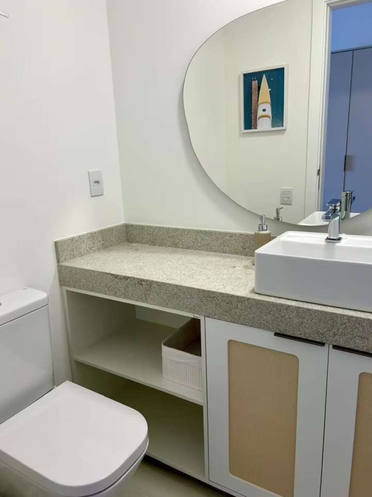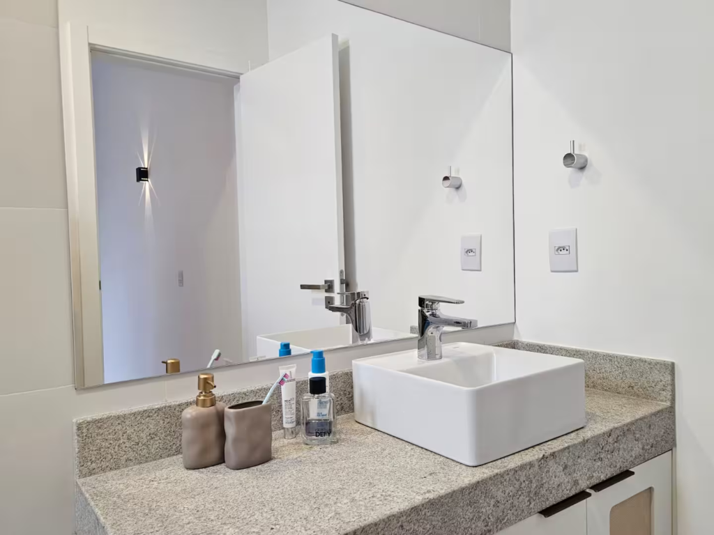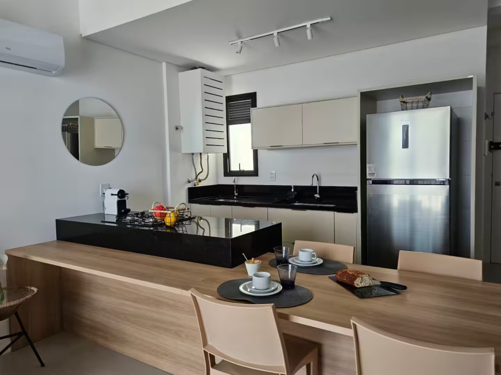 Com 56m² privativos, o imóvel combina design contemporâneo, funcionalidade e conforto em condomínio de alto padrão, localizado em frente à praia.