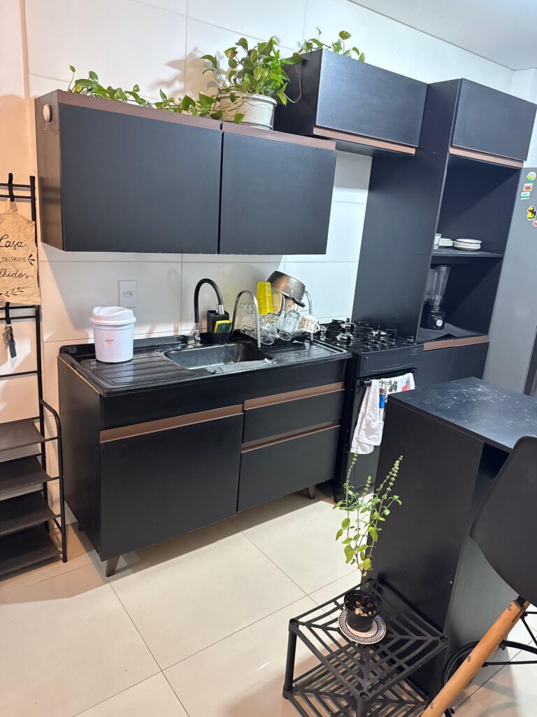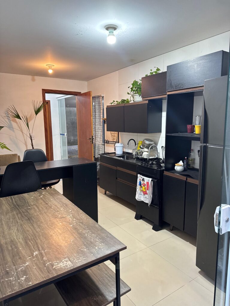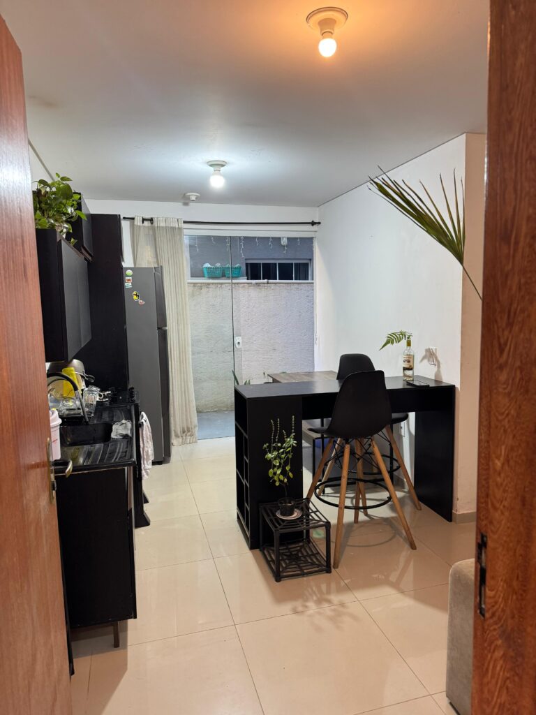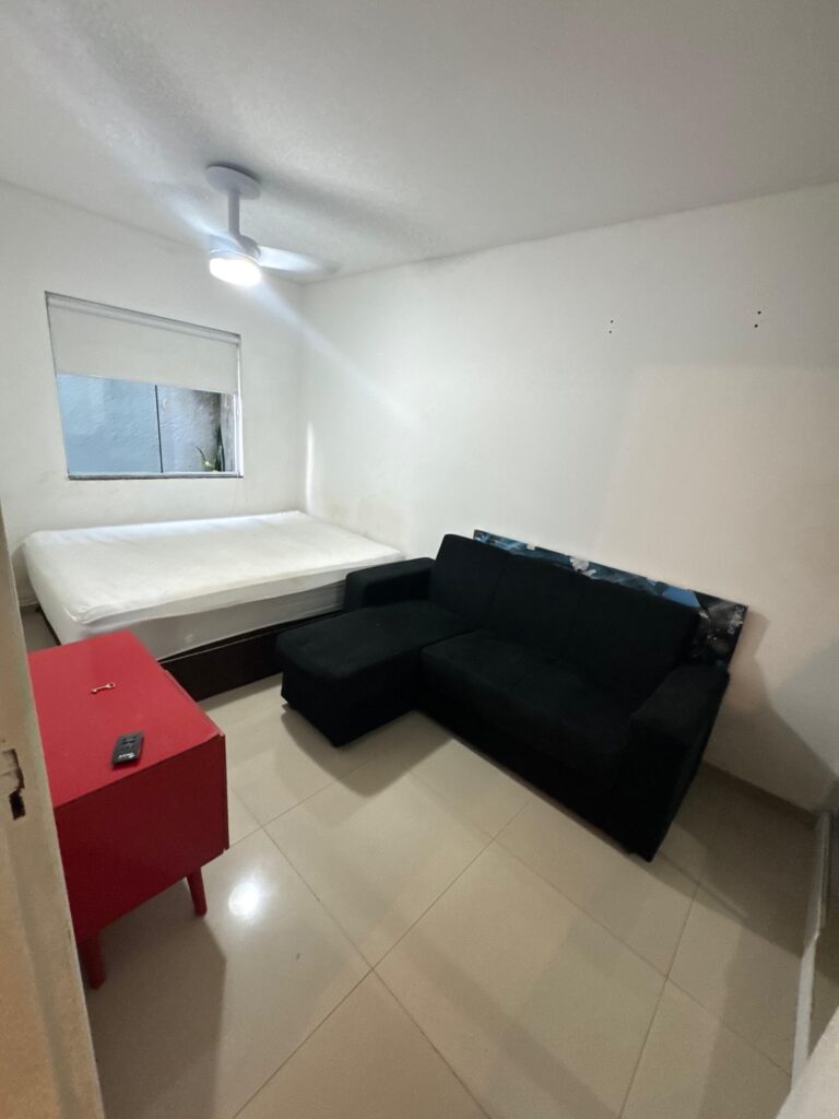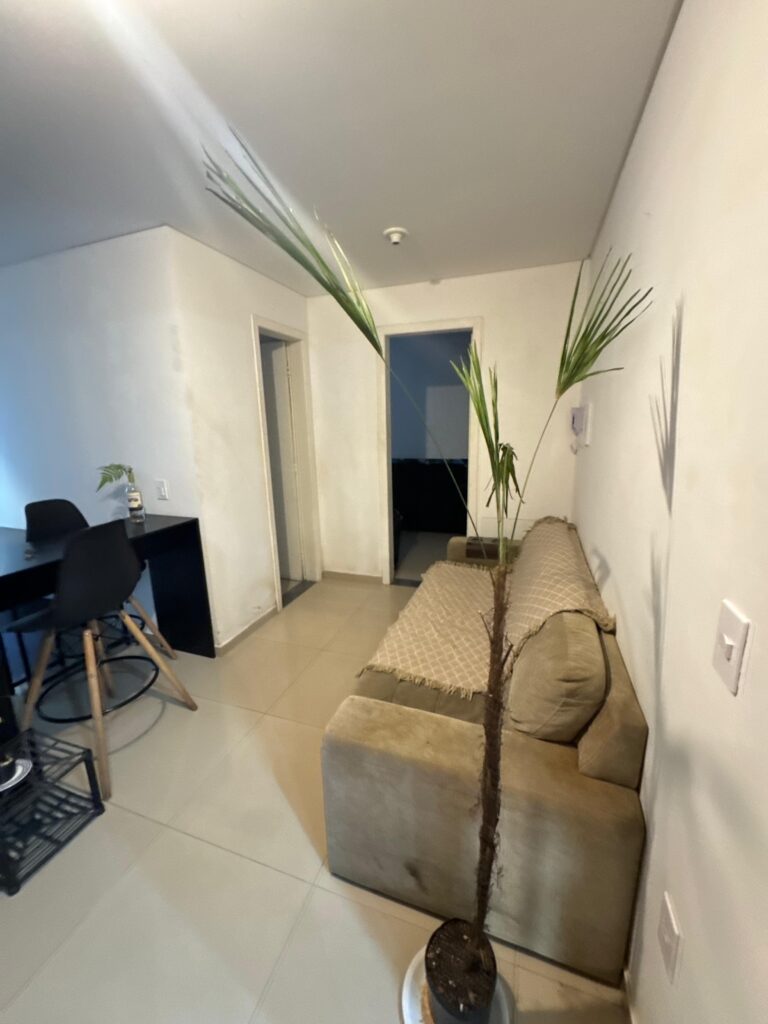 O imóvel é totalmente mobiliado, pronto para morar, com ambientes bem planejados e funcionais. Conta com sala integrada ao dormitório, cozinha equipada, banheiro completo e uma sacada com churrasqueira, perfeita para momentos de lazer e descanso.