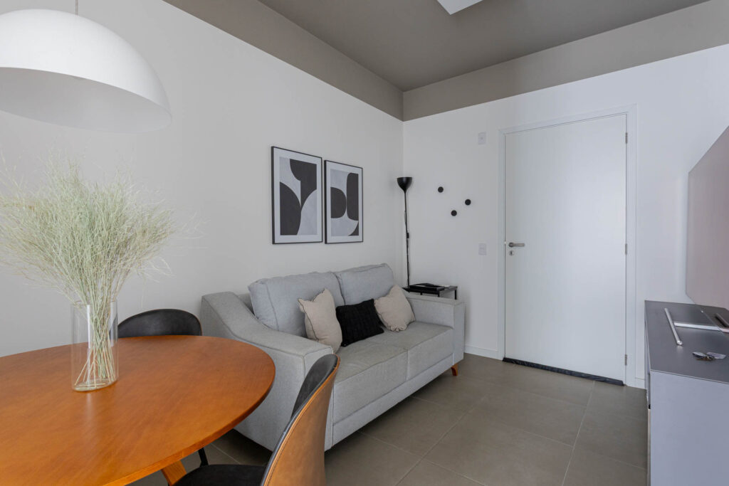 Studio mobiliado com excelente aproveitamento de espaço no Living Trindade, ideal para quem busca praticidade no dia a dia em uma das regiões mais demandadas de Florianópolis.