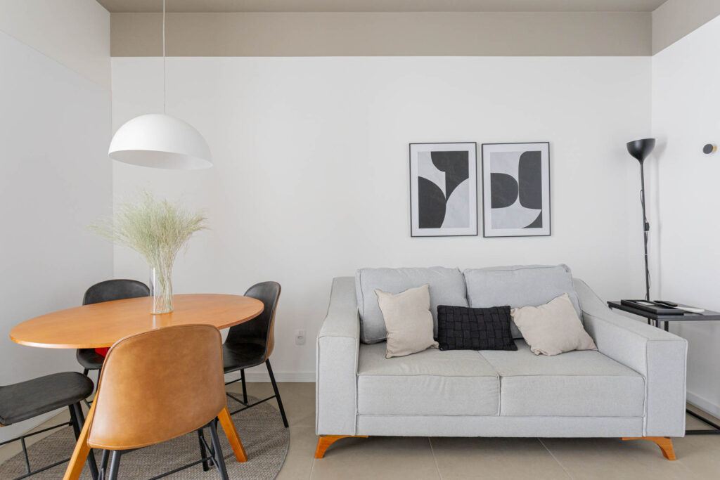 Ambiente integrado, bem distribuído e funcional, com ótima iluminação e conforto para morar sozinho ou estudar com tranquilidade.