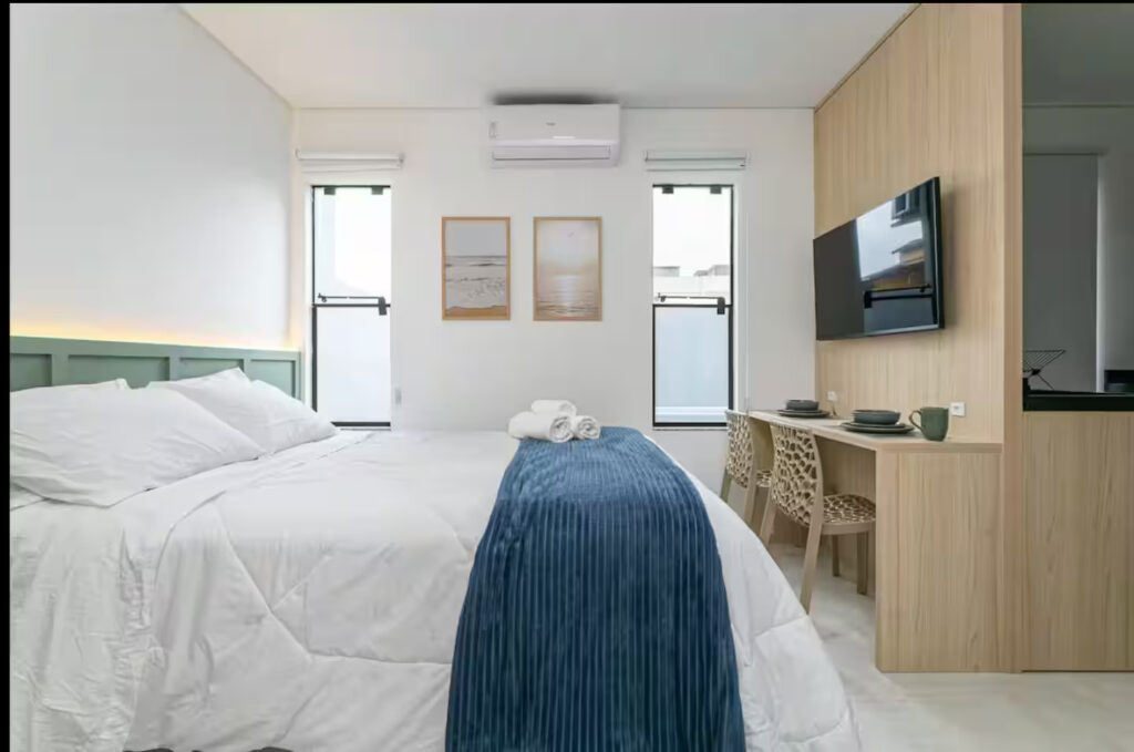 Studio moderno e 100% mobiliado no Campeche, em localização estratégica no sul da ilha.