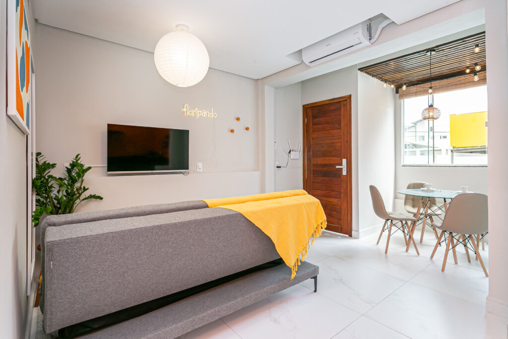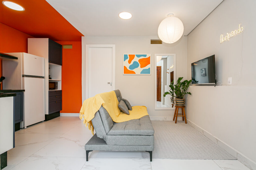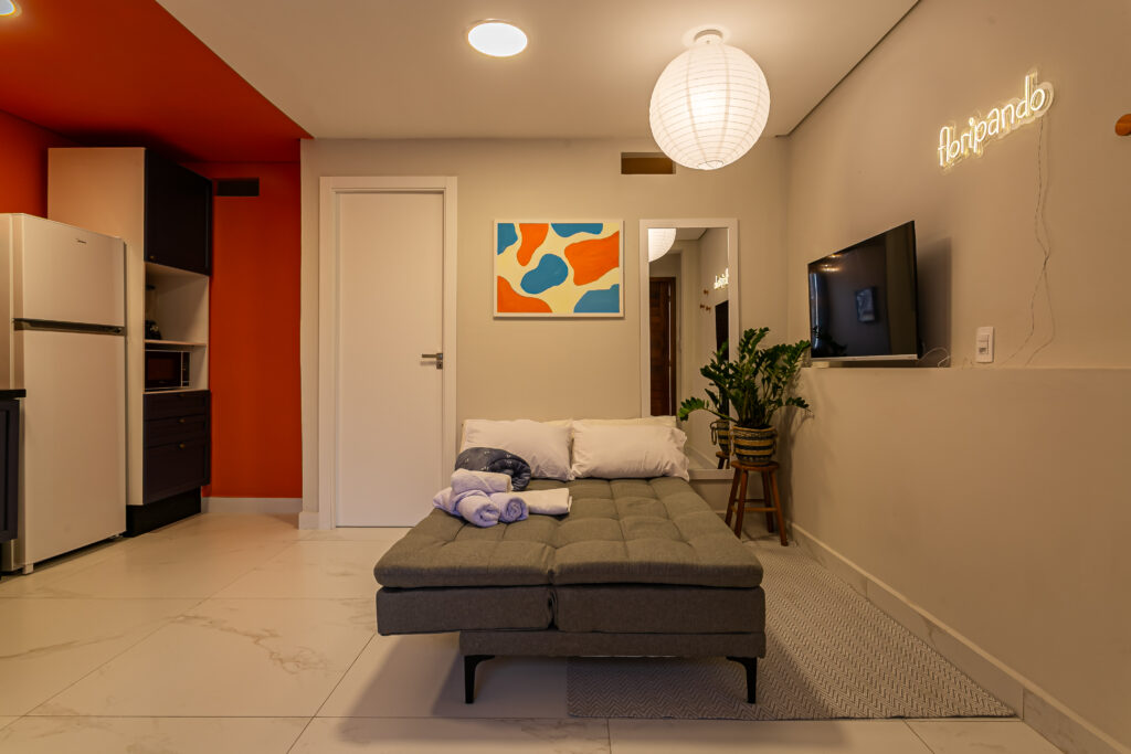 Apartamento de 1 quarto, moderno e totalmente mobiliado, pronto para morar e pensado para quem busca praticidade com conforto no dia a dia.