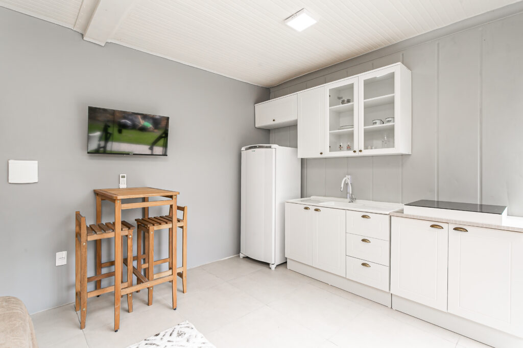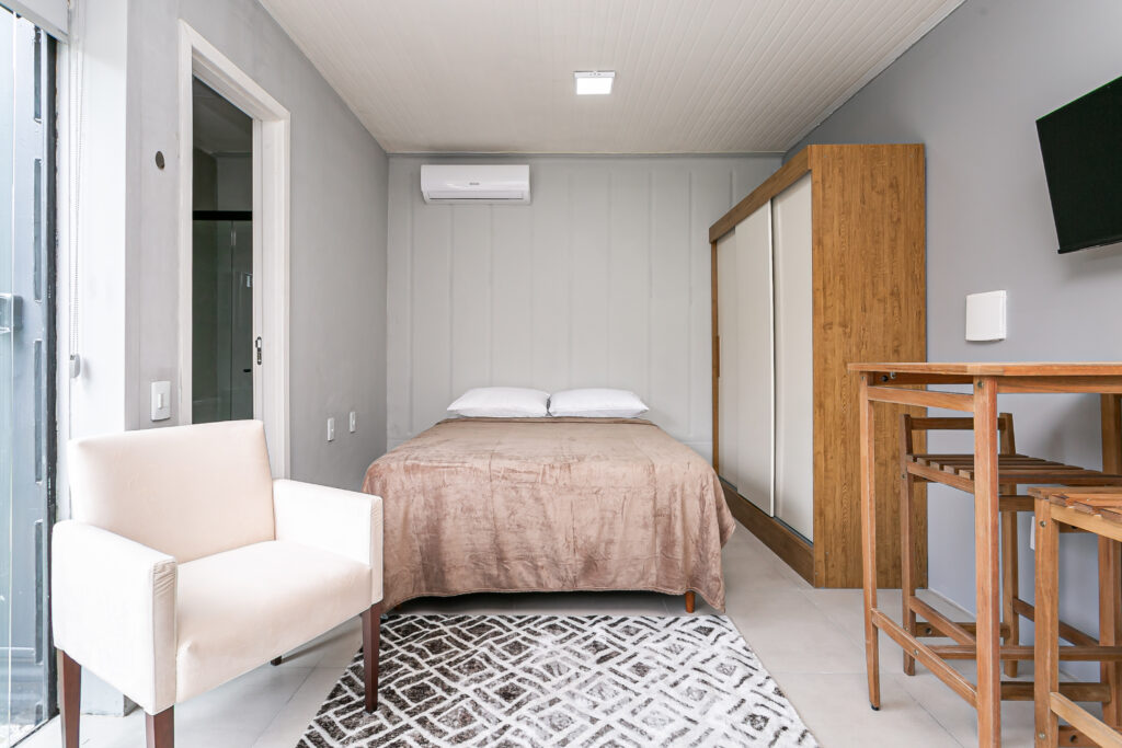Unidade de 1 Quarto – 40m² Este espaço 100% mobiliado está pronto para você! Basta trazer suas roupas e se instalar. Confira o que já espera por você: